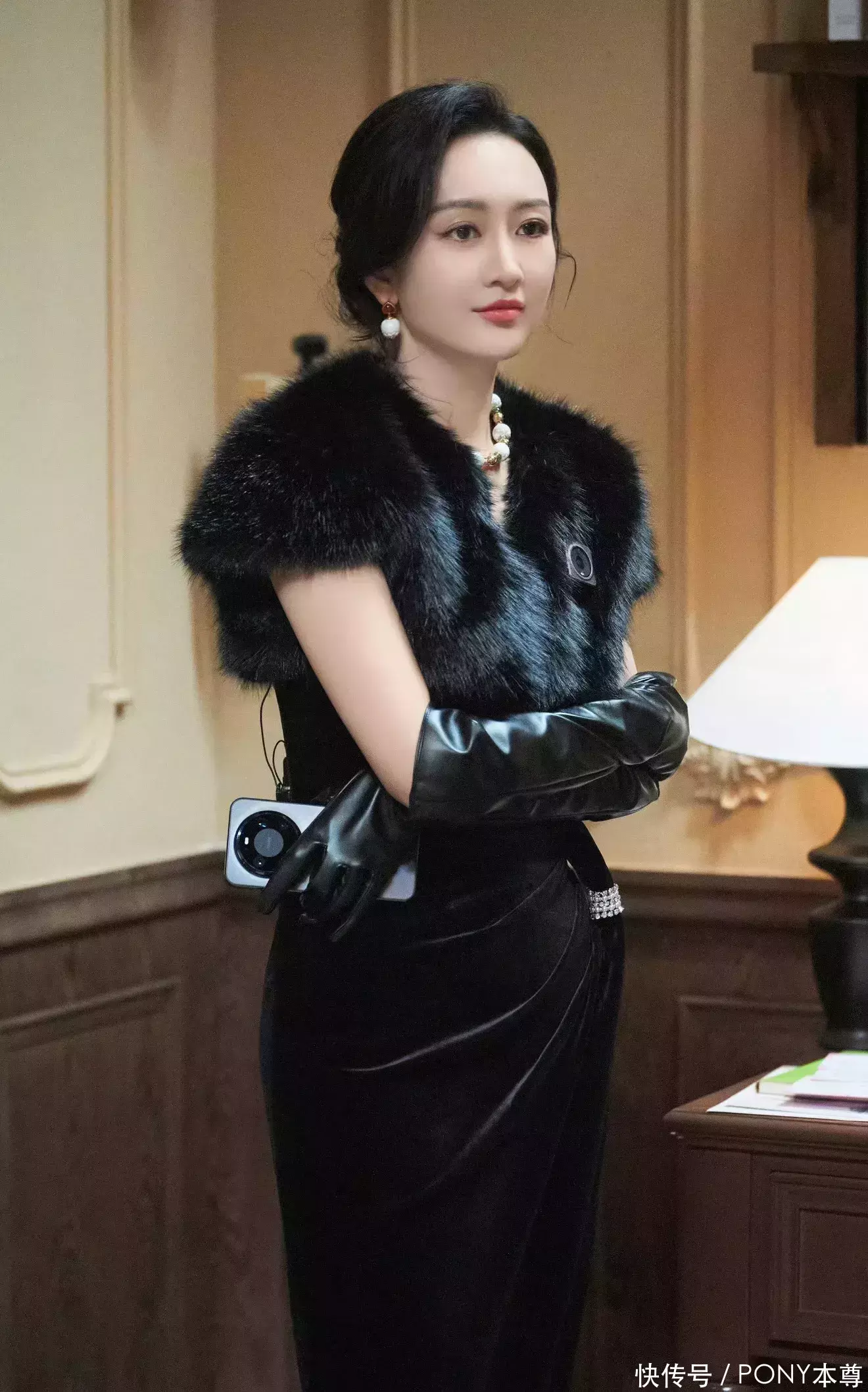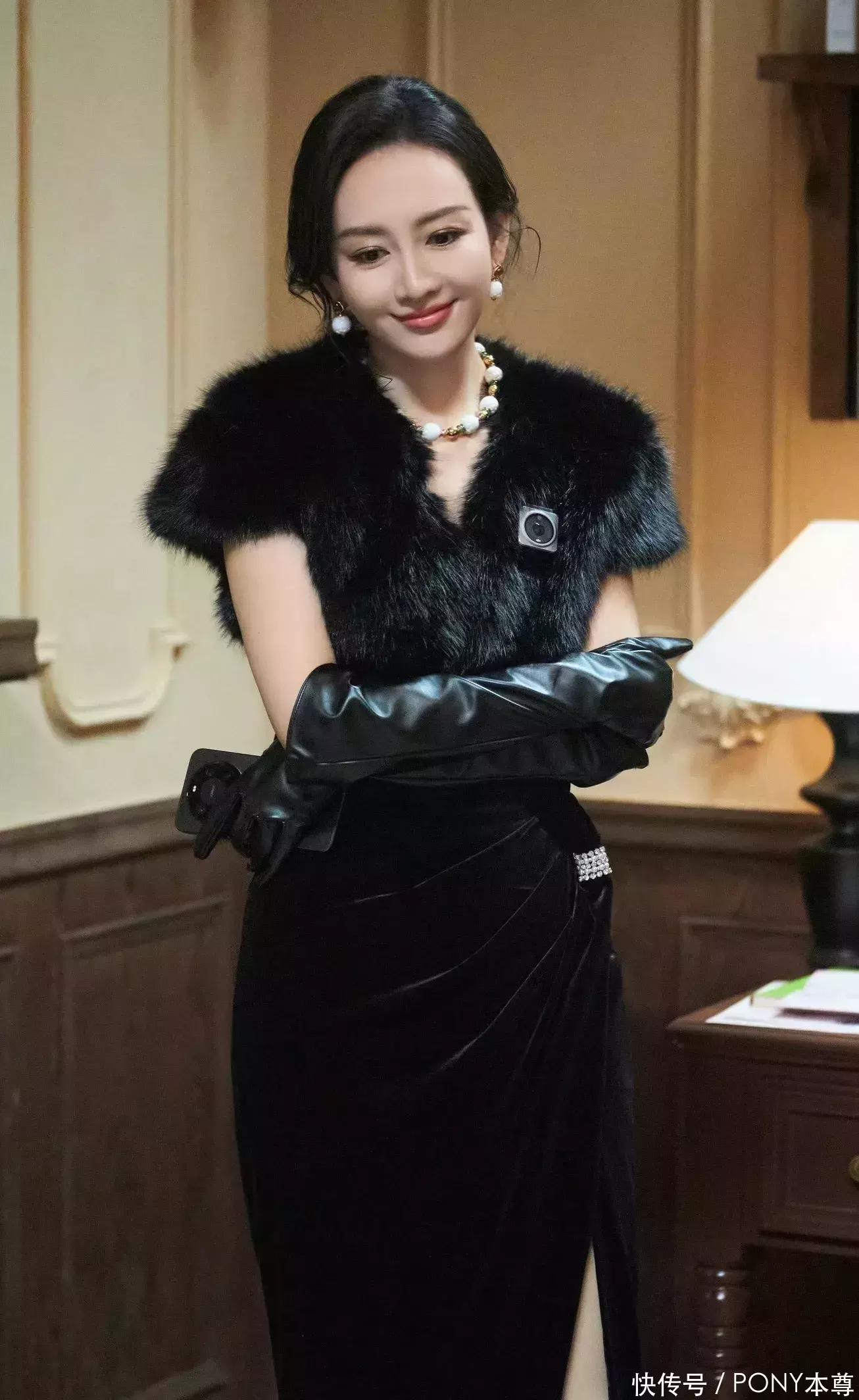 她的配饰总能有“画龙点睛”的作用!她这次为自己的短皮草外套搭配了一对黑色皮质手套,复古层次感拉满!